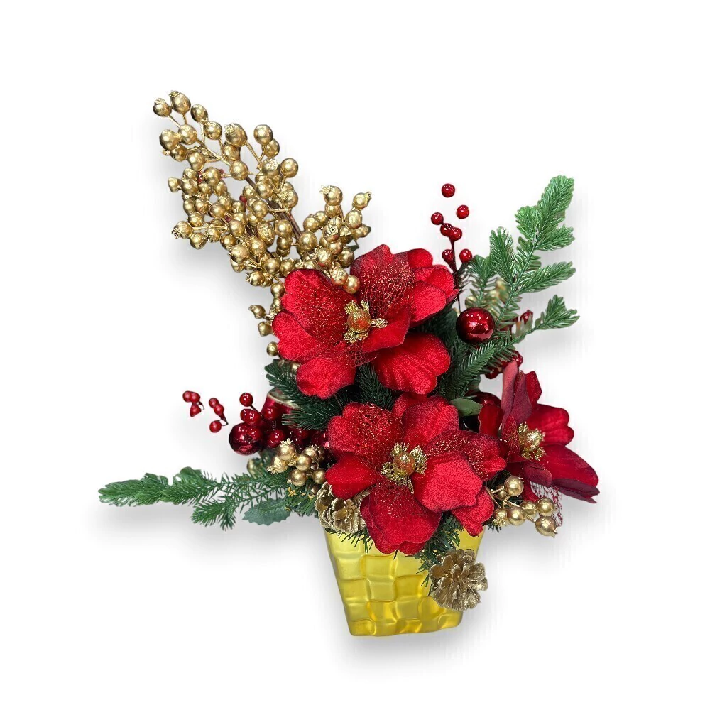 Arranjo Magnólias c/ Vaso Dourado 60cm