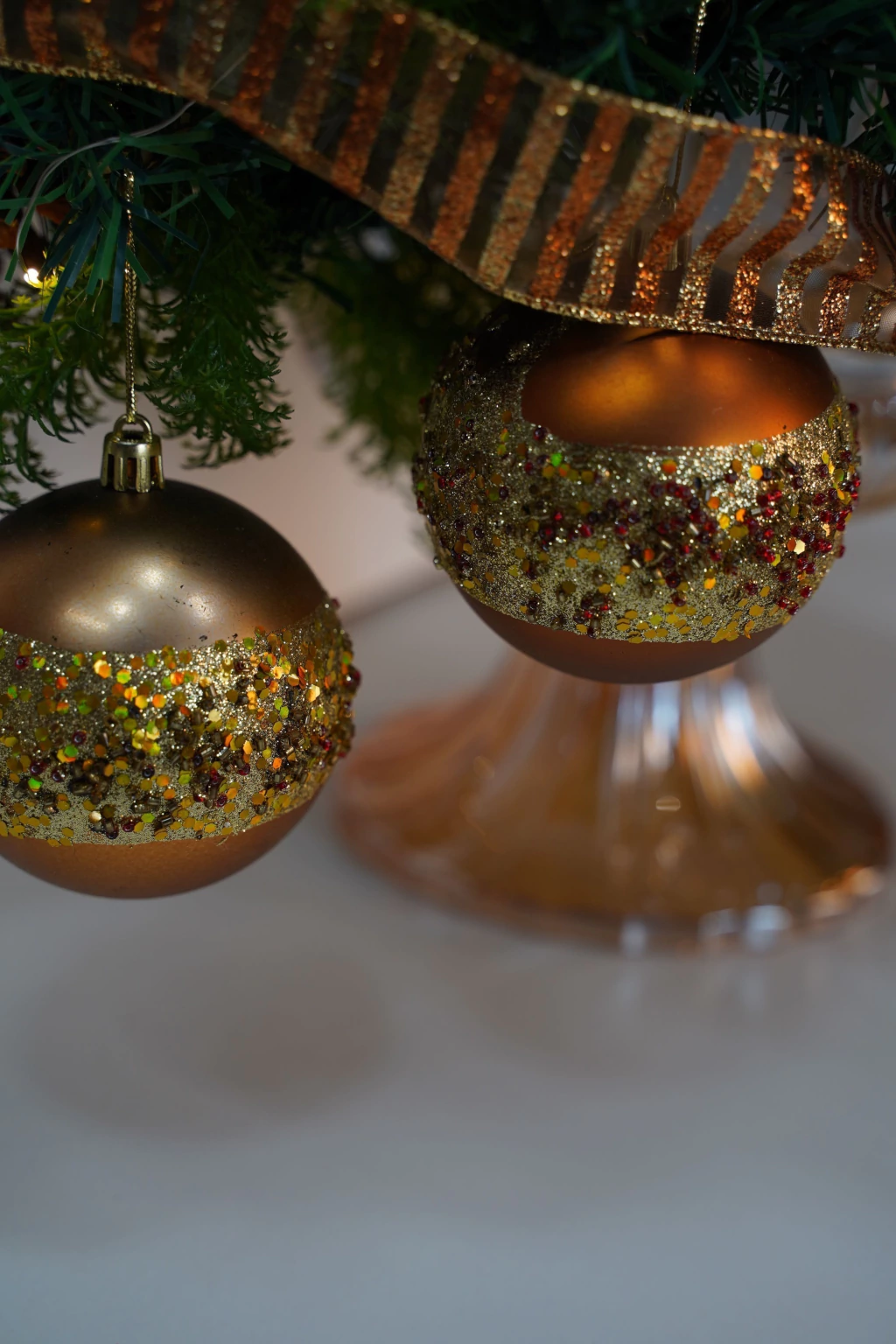 Ele combina o brilho sofisticado do dourado com elementos clássicos do Natal, criando uma composição imponente, luxuosa e cheia de presença.